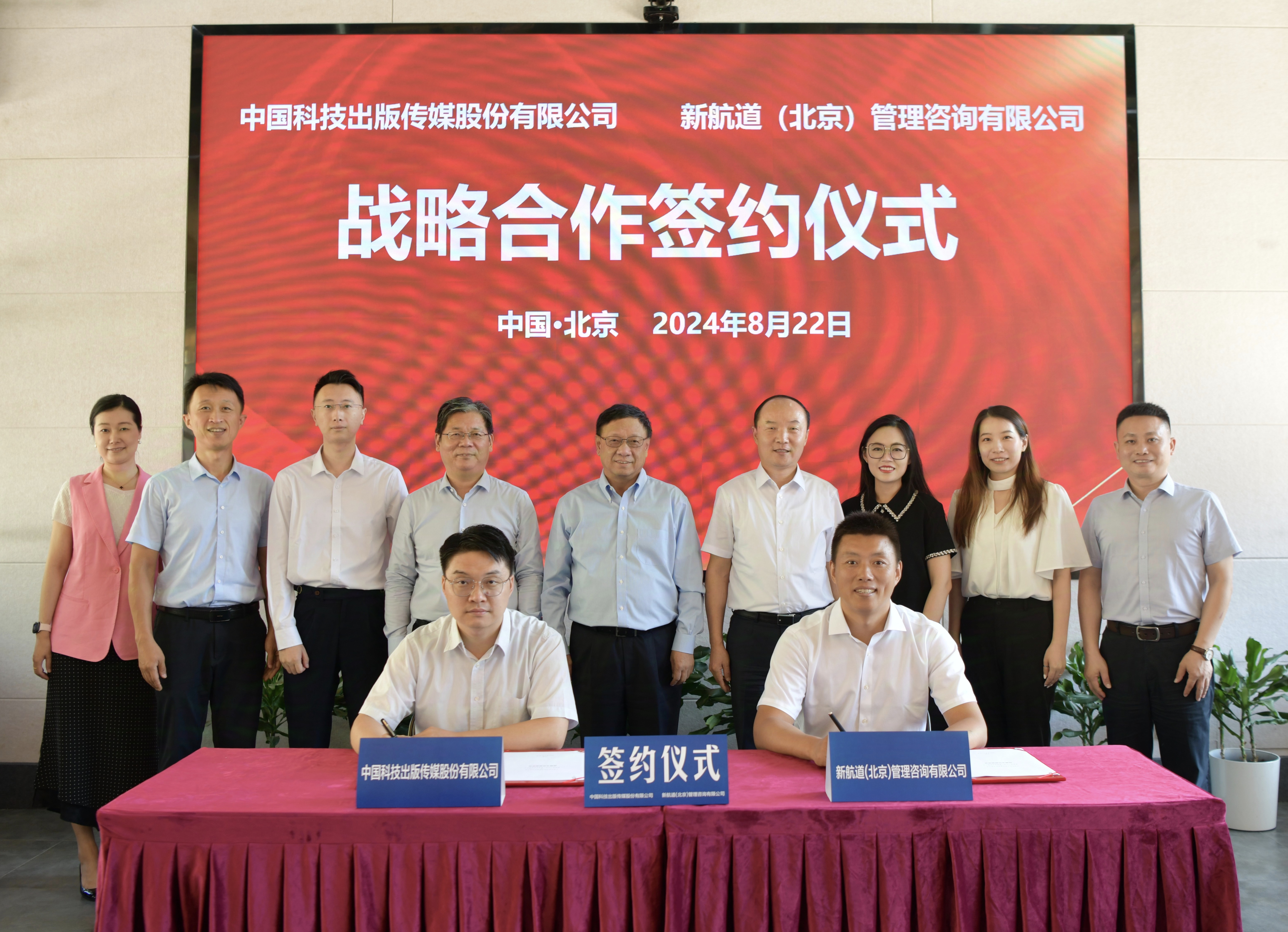 2024年8月22日,中國(guó)科技出版?zhèn)髅焦煞萦邢薰荆ㄒ韵潞?jiǎn)稱“中國(guó)科傳”)與新航道(北京)管理咨詢有限公司(以下簡(jiǎn)稱“新航道”)戰(zhàn)略合作簽約儀式在京舉行。中國(guó)科傳黨委書記、董事長(zhǎng)、總經(jīng)理胡華強(qiáng),副總經(jīng)理、董事會(huì)秘書張凡等與新航道董事長(zhǎng)胡敏、輪值CEO董會(huì)明等出席簽約儀式。